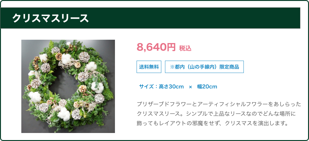 家や外だけではなく、オフィスにクリスマスツリーやリースを飾ってみてはいかがでしょうか。オフィスのサイズに合わせて、サイズも豊富にご用意してますのでまずはお気軽にお問い合わせくださいね。
