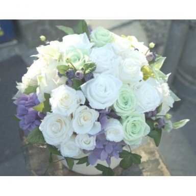 プリザーブドフラワーはブーケになっているものもありますが、生花と違って器に入っているものもあります。